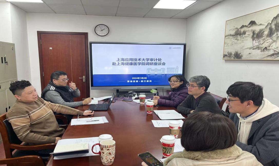 2024年1月2日下午,审计处处长许建强等一行4人赴上海健康医学院就审计信息化建设、经责审计实施、工程跟踪审计实施等情况开展调研。